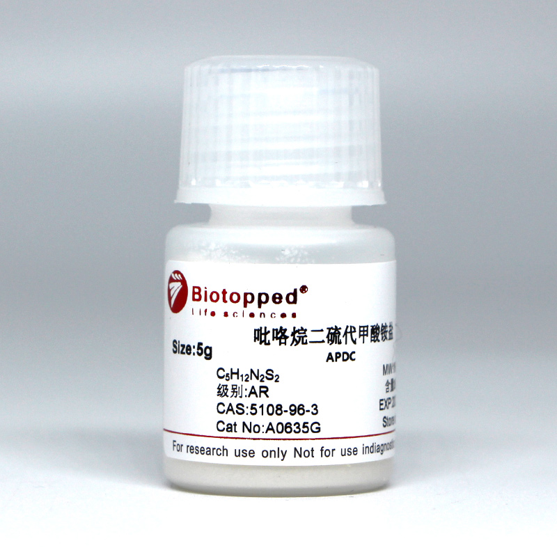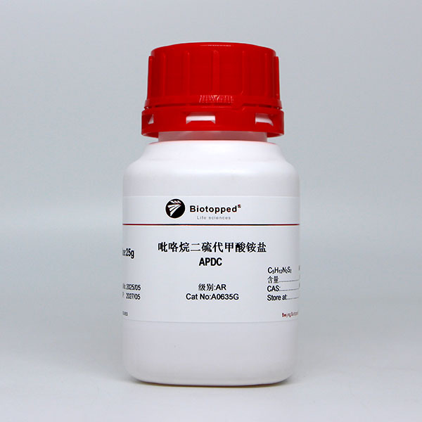 用途:本品仅供科研,不得用于其它用途。(以下用途仅供参考)发射光谱测定三价铬。多种金属络合剂。测尿中痕量铅。微量测定镉、钴、铋和钼。从酸性溶液中沉淀砷、铋、镉、钴、铜、铁、锰、镍、铅、锑、锡、钒、锌。原子吸收分光光度分析的络合剂。原子吸收分析试剂。