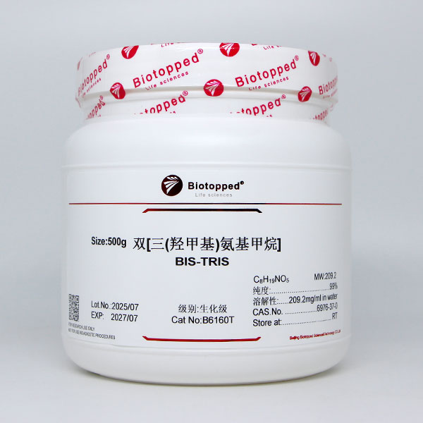 Bis-Tris为缓冲剂,pH缓冲范围5.8-7.2;用于测定肌酸激酶的有效缓冲剂;血红蛋白冷冻干燥时的保护剂。