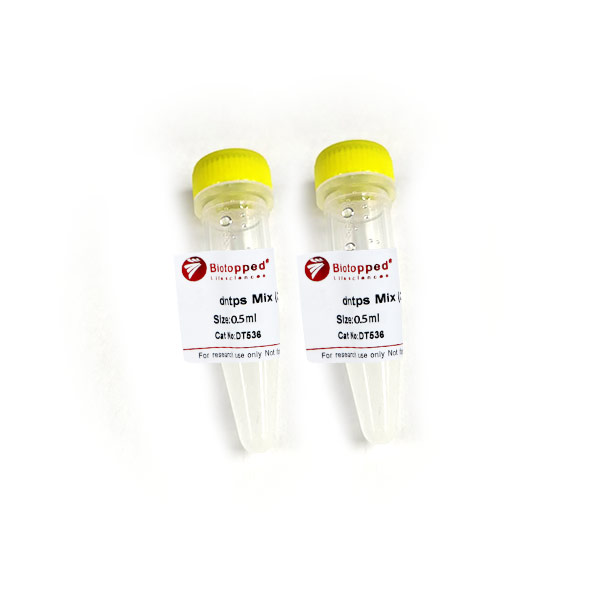 本产品由等摩尔数的dATP、dTTP、dGTP和dCTP混合而成,每种dNTP的终浓度分别为25 mM。经检测无外源核酸酶和磷酸酶污染。可作为PCR、RT-PCR反应的底物或其它DNA聚合酶的底物。