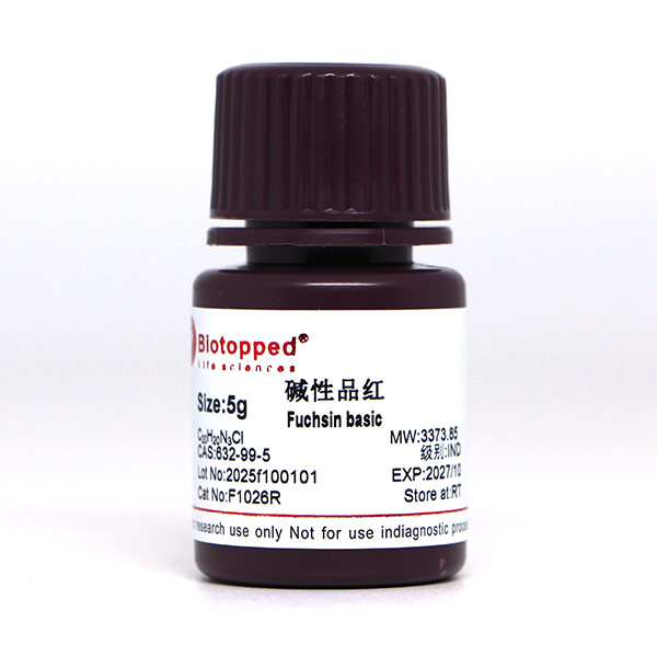 用途:本品仅供科研,不得用于其它用途。(以下用途仅供参考)用于配制席夫试剂检测醛类,用于萃取光度法测定某些酸根离子及金属离子。也用于光度法检测溴,亚硝酸盐和二氧化硫。用作极谱分析中的极大抑制剂。还用作生化分析的核染料,为最强的核染料。能使粘朊、弹性组织和嗜品红的颗粒染色。中枢神经的核染色;细菌学中用以鉴别结核杆菌;分析化学中配制席夫试剂检验醛类。用溴酸盐滴定的氧化还原指示剂