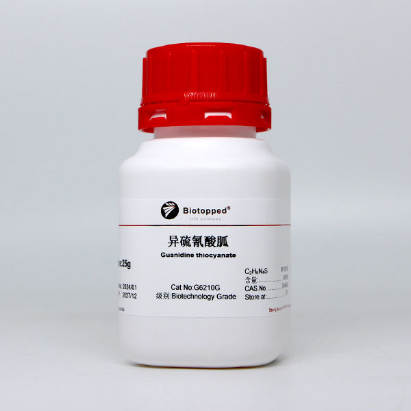 异硫氰酸胍属于解偶剂,是一类强力的蛋白质变性剂,可溶解蛋白质,主要作用是裂解细胞,使细胞中的蛋白,核酸物质解聚得到释放,提取RNA和DNA。