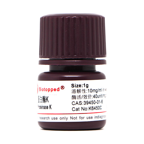 蛋白酶K已广泛应用在皮革、毛皮、丝绸、医药、食品、酿造等方面。皮革工业的脱毛和软化已大量利用蛋白酶,既节省时间,又改善劳动卫生条件。蛋白酶还可用于蚕丝脱胶、肉类嫩化、酒类澄清。临床上可作药用,如用胃蛋白酶治疗消化不良,用酸性蛋白酶治疗支气管炎,用弹性蛋白酶治疗脉管炎以及用胰蛋白酶、胰凝乳蛋白酶对外科化脓性创口的净化及胸腔间浆膜粘连的治疗。加酶洗衣粉是洗涤剂中的新产品,含碱性蛋白酶,能去除衣物上的血渍和蛋白污物,但使用时注意不要接触皮肤,以免损伤皮肤表面的蛋白质,引起皮疹、湿疹等过敏现象。