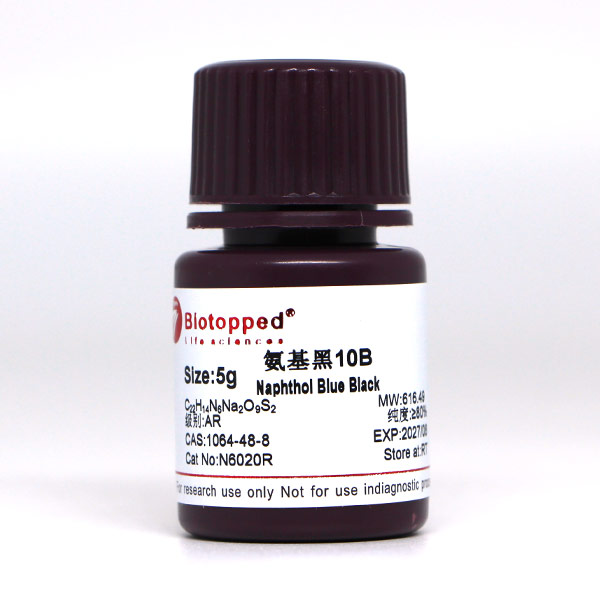 用途:本品仅供科研,不得用于其它用途。(以下用途仅供参考)电泳试剂,用于对聚丙烯酰胺凝胶、琼脂糖凝胶和硝酸纤维素膜上蛋白质的染色。在电泳后,推荐固定蛋白质在胶上。胶用 0.1% 氨基黑10B7% (v/v) 醋酸溶液染至少2 小时,然后用7% (v/v) 醋酸溶液脱色。检测灵敏度大概是考马斯亮蓝R25020%。氧化还原指示剂