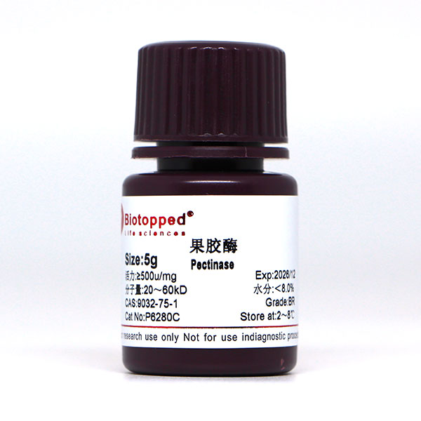 用途:本品仅供科研,不得用于其它用途。(以下用途仅供参考)用于水解果胶质、蛋白质。可单独与其他酶类共同发挥作用,降解果胶质,生成半乳糖醛酸和寡聚半乳糖醛酸等。