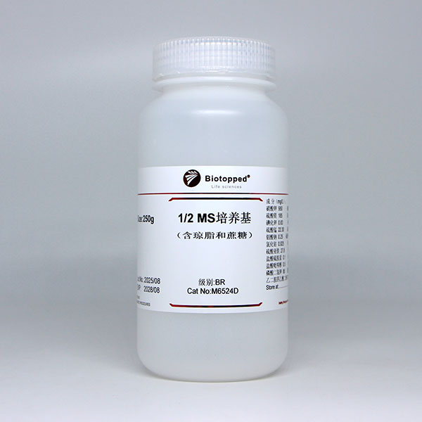 MS培养基是Murashige和Skoog于1962年为烟草细胞培养而设计的,简称为MS Medium。MS固体培养基(含Agar)用于诱导愈伤组织,也用于胚、茎段、茎尖及花药的培养,MS液体培养基主要用于细胞悬浮培养。目前,MS培养基是植物组织培养领域使用最普遍的培养基,较高的无机盐浓度,能够保证组织生长所需的矿质营养,还能加速愈伤组织的生长。一般情况下,不用无需添加氨基酸、酪蛋白水解物、酵母提取物和椰子汁等有机成分。由于其离子浓度高,在配制、贮存和除菌等过程中,即使有些成分略有损失,也不会影响离子间的平衡。