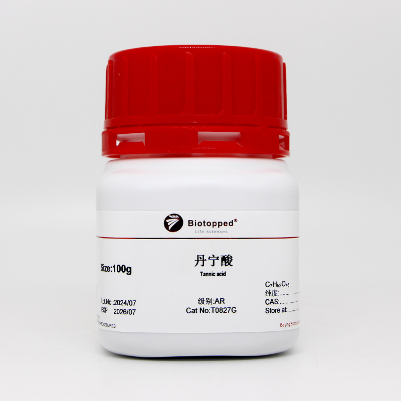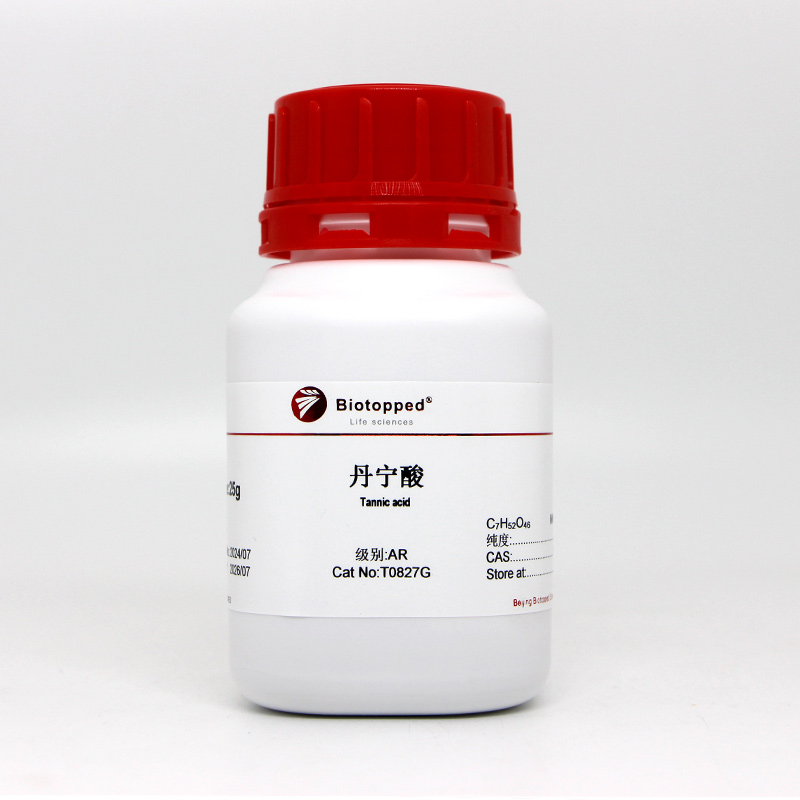 外观(性状) 浅黄白色至浅棕色无定形粉末或疏松有光泽的鳞片或海绵块状。微有特殊气味。具强烈的涩味。露置光和空气中色变深。在210~215℃时大部分分解为焦性没食子酸和二氧化碳。遇清蛋白、淀粉、明胶及许多生物碱和金属盐类产生不溶性沉淀,遇铁盐也产生黑色或沉淀。1g溶于0.35ml水、1ml热甘油,易溶于乙醇、丙酮,几乎不溶于乙醚、苯、氯仿和石油醚。熔融并分解。 用途:本品仅供科研,不得用于其它用途。(以下用途仅供参考)铍、铝、镓、铟、铌、钽和锆的沉淀和重量测定。铜、铁、钒、铈和钴的比色测定。蛋白质及生物碱的沉淀剂。钼酸铵滴定铅时的外指示剂。