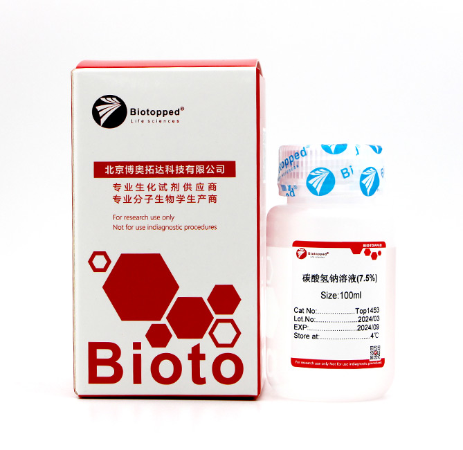 碳酸氢钠(Sodium Bicarbonate)溶于水后呈弱碱性,Sodium Bicarbonate Solution(NaHCO 3 ,7.5%)经无菌处理,多用于细胞培养过程中调节培养基 pH 值。